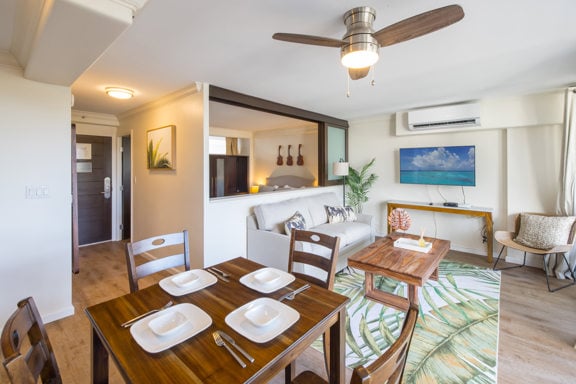 Profitez du meilleur de Waikiki dans ce complexe en copropriété intime de style boutique. Son style contemporain s'accorde parfaitement avec son emplacement dans le quartier des boutiques et des restaurants de Waikiki Beach Walk®. Chaque copropriété d'une ou deux chambres comprend des meubles de belle facture, des planchers de bois franc sur mesure, des fenêtres du sol au plafond, des cuisines et une salle à manger joliment aménagées, la climatisation, des télévisions à écran plat, des salles de bains douillettes avec douche à l'italienne, de spacieuses vérandas carrelées avec vue sur la ville ou partielle sur l'océan et accès Internet haut débit gratuit.